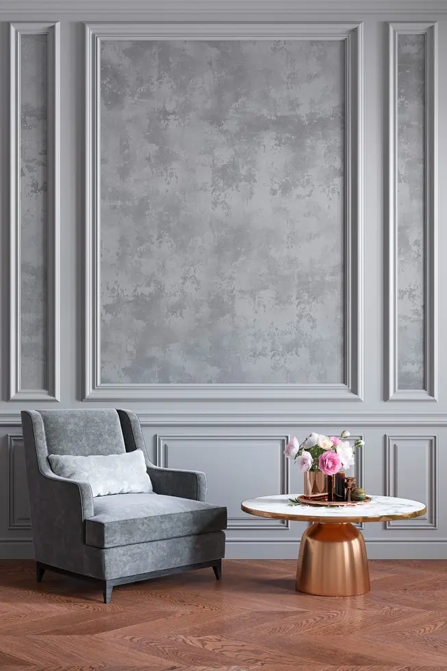 Povrchy mají měkký vizuální efekt, jemné perleťové nebo minerální odlesky a přirozenou hloubku.